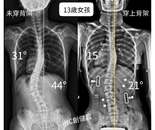 13歲脊椎側彎女孩,胸彎31度腰彎44度